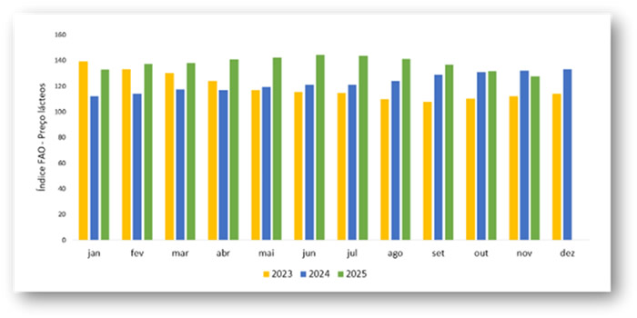 Esta interpretación es corroborada por los indicadores de la FAO , que muestran una reducción en los precios internacionales de los productos lácteos a lo largo de 2025. El comportamiento de estos índices refuerza que, aun con la demanda global manteniéndose activa, no fue suficiente para absorber el volumen adicional ofrecido por el mercado.