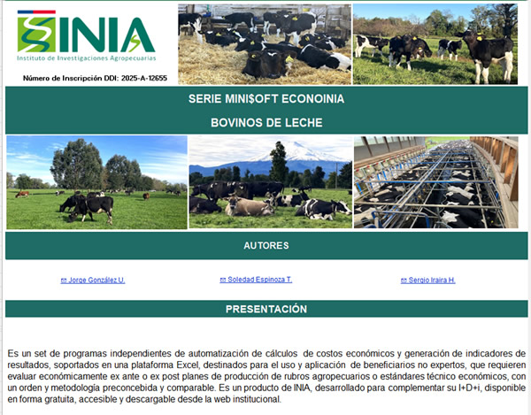 El software Mini$oft EconoINIA Bovinos de Leche está destinado a productores y profesionales del agro, y fue implementado por profesionales del Instituto de Investigaciones Agropecuarias (INIA).