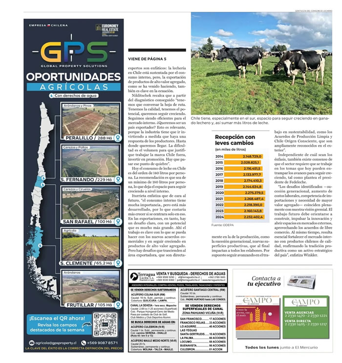 'Hoy Chile produce 2.500 millones de litros. Si ingresaran cien mil hectáreas más, podríamos crecer en al menos unos cien millones de litros más. Pero para que eso se concrete hay que abrir camino. La producción se ha sostenido porque los que quedaron crecieron. La pregunta es ¿vamos a dar las facilidades para que nuevos inversores ingresen?', dice el presidente del Consorcio.