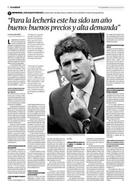 -Nosotros tenemos un buen diagnóstico, estamos observando bien lo que ha ocurrido este año. Hay países que son importantes productores en Europa, otros como EE.UU. y Australia que han tenido un año bastante malo. De acuerdo con la información que nos ha entregado Odepa (Oficina de Estudios y Políticas Agrarias) para la lechería chilena este ha sido un año bueno, con buenos precios, con alta demanda. La producción lechera ha aumentado también en un 5%.