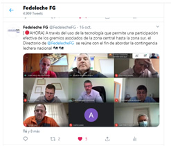 Para tratar materia propias del quehacer gremial y analizar la situación coyuntural del sector, el directorio de la Federación Gremial Nacional de Productores de Leche, FEDELECHE, se reunió este viernes, y a través del uso de la tecnología, congregó a los representantes de las asociaciones regionales lecheras integrantes.