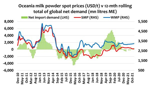 Las restricciones para limitar la propagación de los casos de covid_19 siguen apoyando el crecimiento de la demanda minorista, mientras que el comercio de servicios alimentarios (catering) seguirá siendo débil. El riesgo de que aumente el suministro de grasa láctea durante el invierno septentrional, con festejos moderados, sigue siendo un riesgo, que depende de la magnitud del crecimiento de la leche.