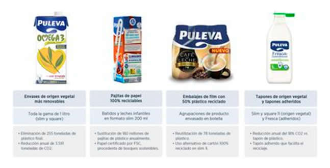 - Envases de origen vegetal más renovables, en toda la gama de 1 litro. Han eliminado así 255 toneladas de plástico fósil y han logrado una reducción anual de 3.591 toneladas de CO₂.