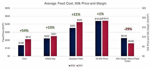 Los costos de los insumos serán un factor crítico para determinar la capacidad de los Estados Unidos para aumentar la producción de leche en 2022 y aprovechar las oportunidades esperadas derivadas del crecimiento más lento de Europa y Nueva Zelanda.
