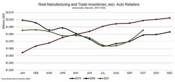 Positivamente, los datos más recientes muestran que los inventarios comerciales y de fabricación nacionales han subido por encima del ritmo de 2020 después de estar a la zaga durante gran parte del primer semestre. Eso significa que, si esta tendencia continúa, los fabricantes ya no tendrán tanta necesidad de productos este año y estarán en mejores condiciones para satisfacer la demanda de bienes de los consumidores. Persisten los inventarios minoristas más bajos, particularmente en el sector automotriz, pero, en general, la imagen del inventario es más positiva que en este punto el año pasado, lo que debería ayudar a aliviar el tráfico de importación.