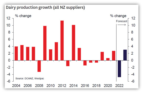 Economistas de Westpac pronostican una caída récord en la producción de leche de Nueva Zelanda esta temporada y dicen que cuando se combina con la debilidad en el suministro en el extranjero, esto debería asegurar que los precios de la leche comiencen la próxima temporada "con el pie delantero".