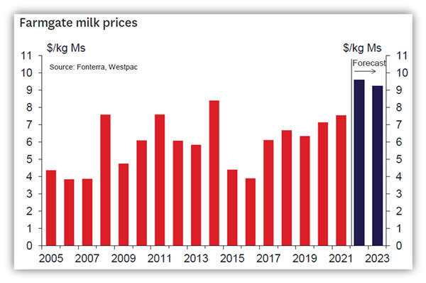 Para la temporada actual, la cooperativa Fonterra pronostica actualmente un precio implícito de $ 9.60, por lo que el pronóstico de Westpac ahora se alinea con eso.