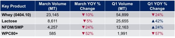 Podría decirse que una recuperación en las exportaciones de suero bajo en proteína (+1%, +320 TM) después de tres meses consecutivos decepcionantes es el indicador más alcista de marzo para el desempeño futuro. Pero dada la importancia de China para el mercado del suero, es probable que los cierres recientes del país y las consecuencias correspondientes con respecto a las cadenas de suministro provoquen que las exportaciones de suero fluctúen significativamente a corto plazo.