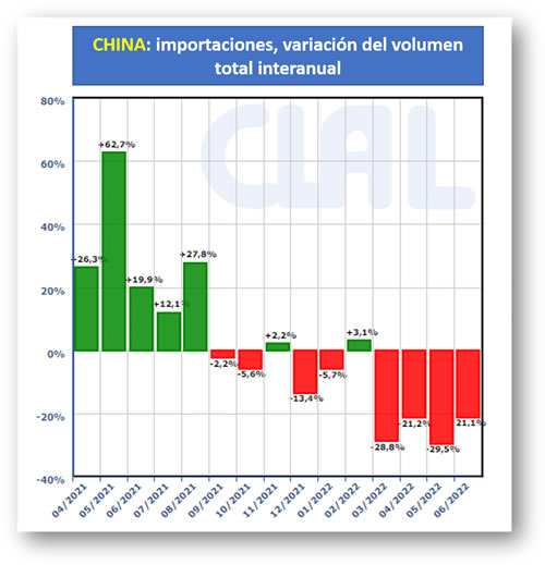 Estas bajas en las compras de China responden en principio a altos stocks generados en las grandes compras de 2021, a las dificultades logísticas que implicaron el cierre de algunas ciudades por rebrotes de Covid, efectos colaterales de la Guerra en Ucrania y el proceso inflacionario que se viene dando en todas las economías mundiales. Por otra parte, en cada oportunidad en que los precios internacionales están muy altos, China no los convalida y espera la retracción para retomar las compras. En función a esto es muy probable que las compras de China se comiencen a normalizar en el segundo semestre de 2022.Fuente: https://bichosdecampo.com/