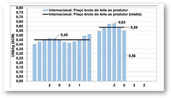 El punto de referencia mundial para los precios de la leche al productor, indicador estimado por International Farm Comparison Network (IFCN), que combina los precios para los cinco principales productos lácteos, alcanzó su punto máximo en abril, cuando logró un valor histórico de US$ 0,63/kg.