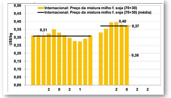 Figura 2 – Indicador de precio mundial de la mezcla 70% maíz + 30% harina de soya.