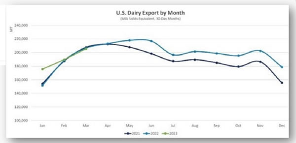 Los datos comerciales de marzo reflejan la dura competencia en el comercio de queso durante los últimos cinco meses, con precios de queso de la UE con un descuento significativo en comparación con los EE. UU. Ese fuerte diferencial de precios hizo retroceder las exportaciones de queso de EE. UU., ya que los importadores aseguraron ventas oportunistas.