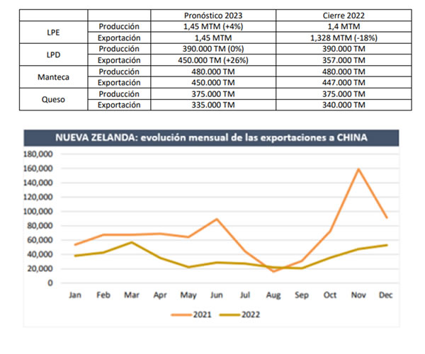 Durante los primeros cuatro meses de 2023, los volúmenes de exportación a los mercados globales tienen un seguimiento similar al de 2022, pero las exportaciones al mayor consumidor, China han disminuido un 13%. Los precios más altos para otros productos básicos, lleva a priorizar los concentrados de proteína, suero, fórmulas infantiles, grasa y LPD. A pesar de este cambio, el procesamiento de LPE todavía representa un poco más de la mitad de la leche procesada para uso industrial en Nueva Zelanda.