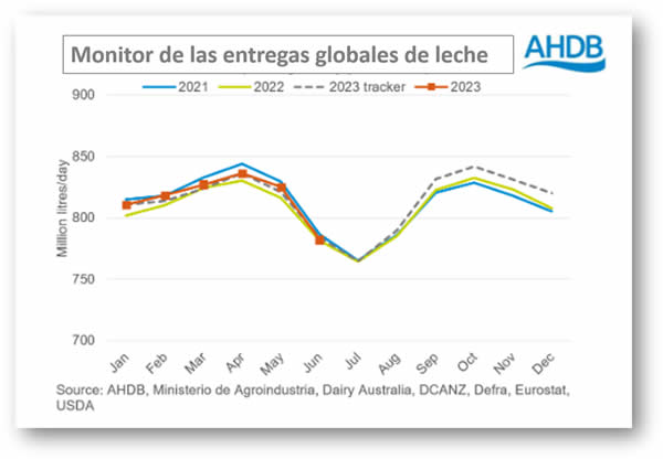 En Australia, el Reino Unido y los Estados Unidos se registró un crecimiento interanual del promedio de entregas diarias. Se registraron descensos en Argentina y Nueva Zelanda. La producción en la UE se mantuvo en línea con la del año pasado.
