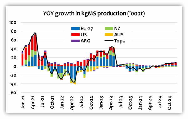 No está nada claro si el suministro de la UE reducirá la producción de leche a corto plazo; el clima volverá a ser crítico como lo fue hace un año. Es posible que los frenos de la producción de leche en los Estados Unidos no estén encendidos por mucho tiempo. Nueva Zelanda puede producir un poco menos de leche debido a un mal comienzo de la primavera y con los precios de la leche ahora muy por debajo del costo de producción para la mayoría de los productores.