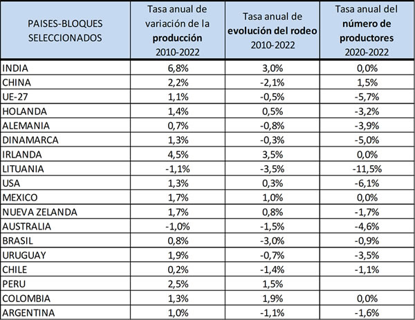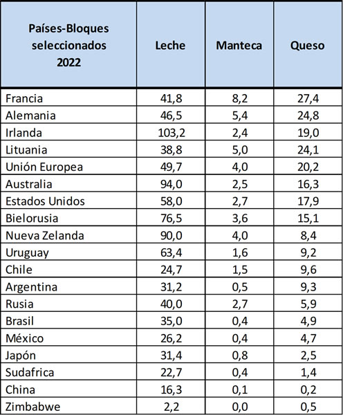 elaborado por el OCLA con datos del World Dairy Situation 2023 de la Federación Internacional de Lechería IDF/FIL