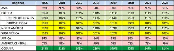 Autosuficiencia de la Producción por regiones mundiales
