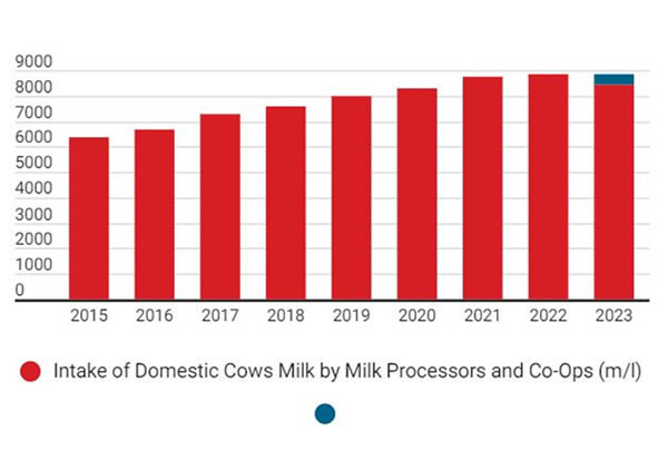 Hay indicios de que el total de leche suministrada podría caer por debajo de los 8.000 millones de litros este año por primera vez desde 2019.