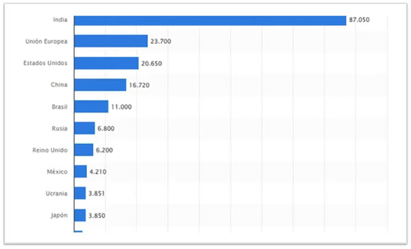 La India es el país que más leche líquida de vaca consumió en 2023. Foto: Statista