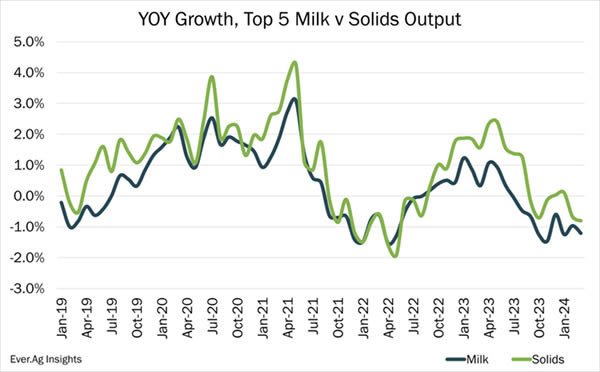 El mercado del queso de EE.UU. sigue siendo el centro de atención dada la importancia del comercio marginal para las tres grandes regiones exportadoras. El repunte de los precios del queso en EE. UU. se estancó y, aunque el crecimiento de la producción de leche es limitado, las presiones continuas sobre el gasto de los consumidores y la expansión de la capacidad del queso pueden presionar los precios del mercado mundial más adelante en 2024 y en el primer semestre de 2025.