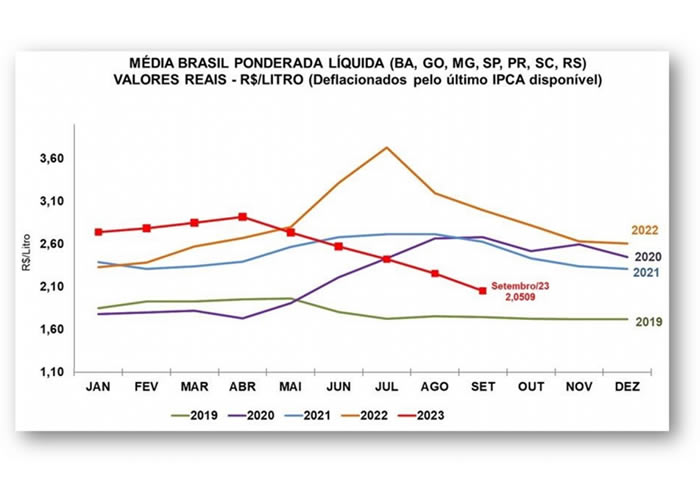 Precio pagado al productor por la leche en Brasil (Fuente CEPEA)