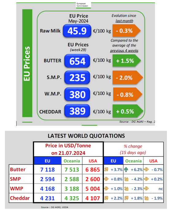 En concreto, en el territorio de la UE las cotizaciones de esta cuarta semana de julio para los productos lácteos son las siguientes: