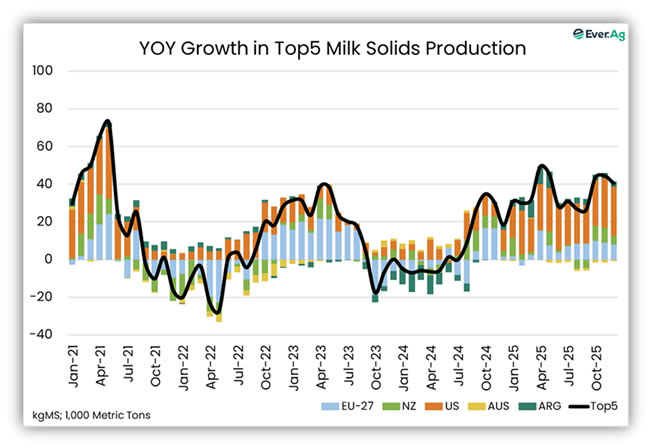 Los mercados lácteos cambian con la producción de la UE, EE. UU. y Nueva Zelanda
