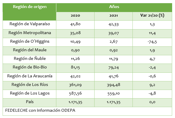 Fuente: Comunicaciones Fedeleche FG con datos de Odepa