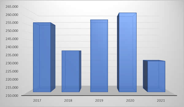 El mismo comportamiento negativo registra la importación de leche entera en polvo (LPE), cuya participación alcanza al 5,3% dentro del total, y muestra un retroceso de un 31,5% en comparación con el año anterior, sumando 46,9 millones de litros equivalentes. En comparación con 2020 se observa una caída de 21,5 millones de litros.