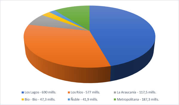 La región de Bio-Bio presentó su décima caída consecutiva mensual en 2021 al registrar en octubre una disminución de un 11,8% en relación al mismo mes del año previo. Este valor supone alcanzar 5,3 millones de litros, una baja interanual de 715 mil litros frente a 2020.