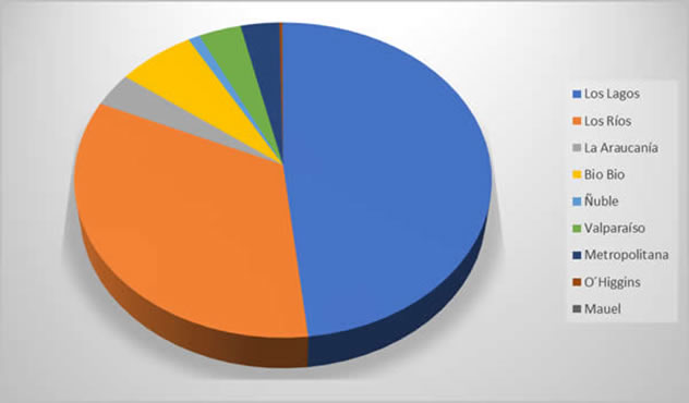 En la región de Los Lagos, la producción de leche disminuyó en un 1,8% respecto del mismo mes del año anterior, lo que supone una baja de 2,5 millones de litros, sumando un total de 135,4 millones de litros.