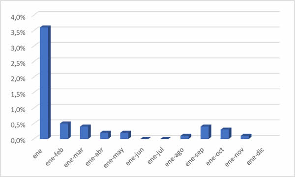 Gráfico 1- Variación recepción de leche cruda acumulada a noviembre 2021