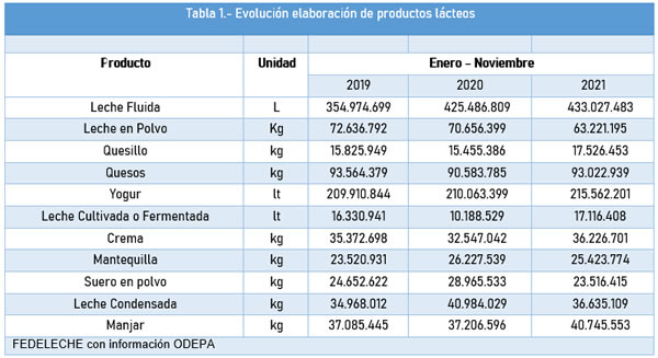 En contraparte, la elaboración de leche condesada se contrajo a noviembre en un 10,6%, lo que equivale a una baja de 4,3 millones de kilos en comparación con el mismo periodo del año pasado, cayendo de 40,9 a 36,6 millones de kilos.