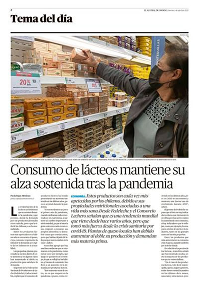El gerente del Consorcio Lechero, entidad que reúne a toda la cadena láctea del país representada por las industrias, academia, productores, entre otros, Octavio Oltra, señaló que el consumo empezó a crecer en Chile antes de que este comportamiento se transformara en una tendencia mundial.