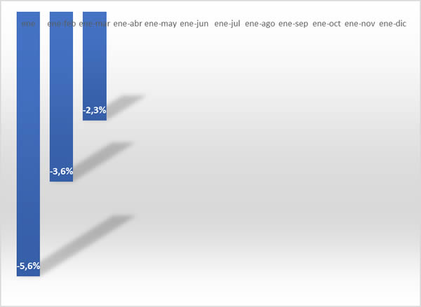 Lo anterior, supone un retroceso interanual de la producción nacional de leche cruda de 13,0 millones de litros, y encadenar cuatro meses consecutivos a la baja. A febrero, la caída fue del 3,6% con una merma de 14,1 millones de litros frente al mismo periodo del año anterior.
