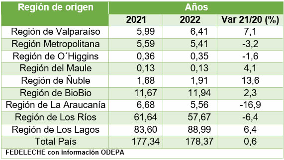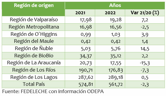 Fuente: Comunicaciones Fedeleche FG con información de ODEPA