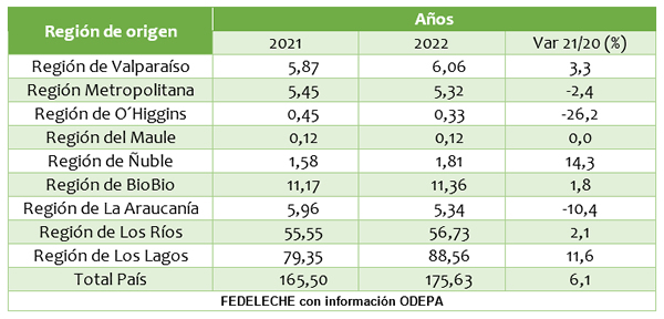 Fuente: Comunicaciones Fedeleche FG con información de ODEPA