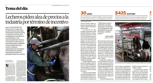 Por otro lado, agregó que la industria necesita que se siga produciendo leche durante el invierno para lograr que sus plantas se mantengan procesando todo el año, por lo que se da una dinámica donde las firmas pagan este bono, que es de aproximadamente 30 pesos por litro, para dar una señal a los agricultores que apunta a que requieren de esta materia prima, para lo que le dan un incentivo para seguir produciendo, lo que se da desde abril hasta el 31 de agosto.