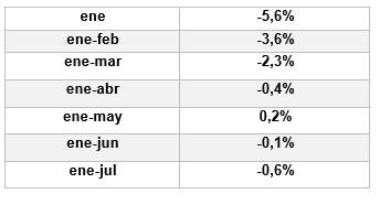En la zona centro y sur, las regiones de Bio-Bio y Ñuble presentan un desempeño mixto al mes de julio.