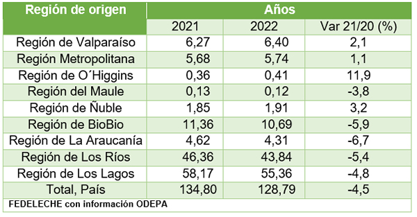 Fuente: Comunicaciones Fedeleche FG con información de ODEPA