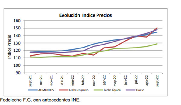 El informe del IPC de los Productos Lácteos elaborado por la Federación Nacional de Productores de Leche (Fedeleche) con antecedentes del Instituto Nacional de Estadísticas (INE), registró en el mes de septiembre un comportamiento al alza para todos los productos lácteos, en cuanto a la variación mensual.