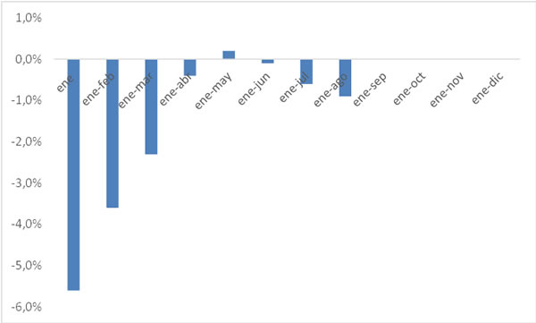 Lo anterior, supone una baja interanual de 12,1 millones de litros.