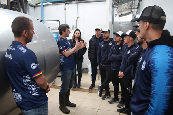 Fue así como los deportistas fueron recibidos por el vicepresidente de la Asociación Gremial, Christopher Spoerer, junto a su hermano y socio de Aproleche, Samuel Spoerer, quienes conversaron con ellos sobre los diferentes procesos que se viven dentro de una lechería y la ruta que toma producir este alimento que contiene proteínas de alta calidad, vitaminas y minerales, los cuales son fundamentales para su crecimiento deportivo.