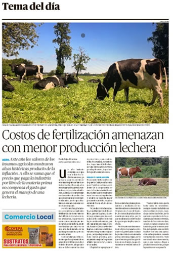 Por ello muchos productores se encuentran actualmente fertilizando con menor intensidad debido al alto valor de estos productos, lo que traería como consecuencia una menor producción lechera, en circunstancias que cada vez es más alta la demanda de las plantas procesadoras por esta materia prima.
