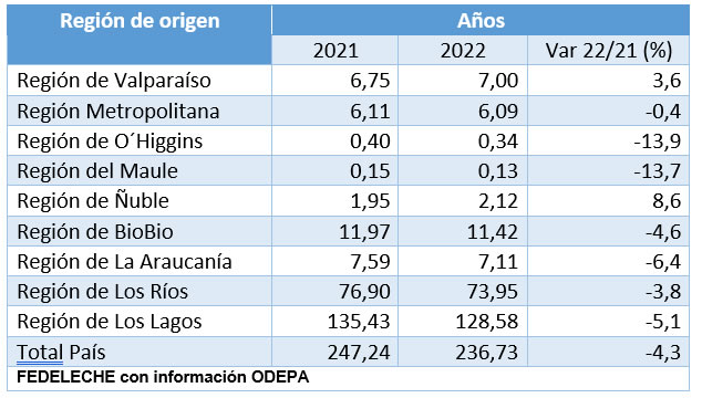 Fuente: Comunicaciones Fedeleche FG con información de Odepa