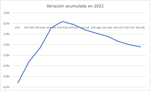 De esta manera, a diciembre de 2022 se encadenan siete meses negativos en recepción de leche, registrando el último mes del año una caída del 3,8% respecto del mismo mes de 2021, pasando de 237,45 a 228,45 millones de litros, lo que supone una merma de 9,0 millones.