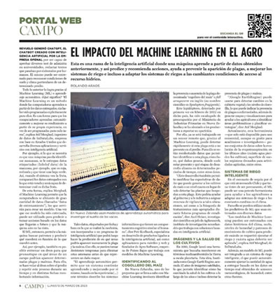 En el escenario de sequía por el que está atravesando Chile y que tiene tintes de ser permanente, el ML puede ser una potente herramienta para ayudar a los agricultores a adaptar sus sistemas de riego a los constantes cambios en el clima.