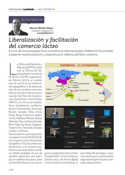 “En la APEC hemos reforzado la importancia que tiene para el desarrollo económico y social de un sector, en nuestro caso, el sector lácteo, la imperiosa necesidad de mantener la posibilidad de uso de los nombres genéricos”, Marcos Winkler, presidente de Fedeleche.