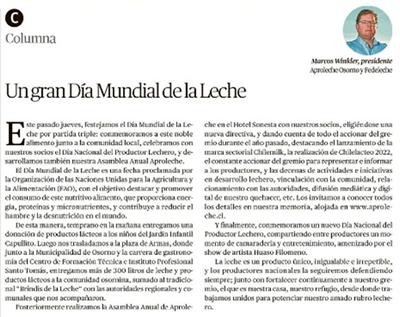 Este pasado jueves, festejamos el Día Mundial de la Leche por partida triple: conmemoramos a este noble alimento junto a la comunidad de Osorno, celebramos con nuestros socios el Día Nacional del Productor Lechero, y participamos en la Asamblea Anual de Aproleche Osorno.