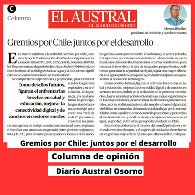 Esta visión colaborativa al interior del mundo privado es y será cada vez más relevante, y el espíritu de unidad se siente fuerte en los gremios. Bajo el lema «Juntos por el Desarrollo», trabajaremos en adelante para fortalecer esta red de Gremios por Chile, aportando así al país que todos anhelamos.